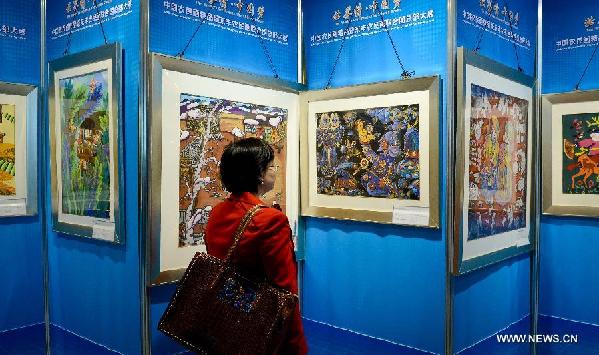 With an exhibition featuring farmers' paintings, Chinese folk artists made their debut on Wednesday at United Nations headquarters in New York. Entitled "The World's Sentiments, the Chinese Dream," the exhibition shows 108 folk paintings selected from regions across China. Created by rural artists with little or no professional training, these works offer vibrant and personal interpretations of country life in China, with an emphasis on local customs, festivals, children, and farm work. "This exhibition not only showcases the talent and charisma of contemporary Chinese farmers, but also tells the world their Chinese dream and love to the world," said Wang Min, China's deputy permanent representative to the United Nations, in his remarks at the opening ceremony. Wang also conveyed the congratulations of UN Secretary-General Ban Ki-moon, who is now on a visit to China, on the opening of this exhibition. "China is a developing country with an agricultural population of over 600 million," Wang said. "Chinese farmer artists use their painting brushes to eulogize the new era of comprehensive reforms, and to celebrate greater prosperity of their living." Peter Launsky-Tieffenthal, Under-Secretary-General for Communications and Public Information of the UN, said the paintings in this exhibition catch the breath and the diversity of human existence. Chinese farmers' paintings represent the long-recognized genre in Chinese art. They reflect nature and rhythms of daily life, harmony and peaceful coexistence. United Nations stands for those very values, he said. "This exhibition is particularly memorable because the artists themselves are also farmers," he said. "It also provides an opportunity for us to better understand each other, and work more closely together towards peace, sustainable development and prosperity." The three-day event is sponsored partly by the Chinese Farmers Calligraphy and Painting Research Association, which was founded by Geng Biao, China's well-known statesman, military strategist and diplomat.