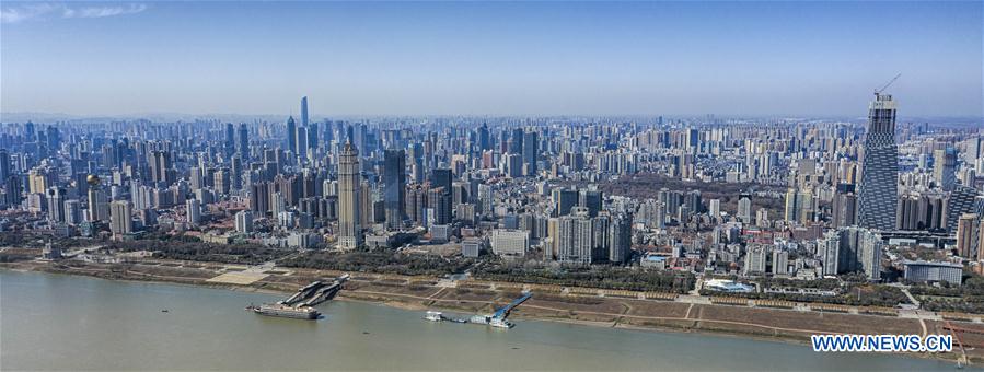 Stitched photo taken on Feb. 16, 2020 shows an aerial view of Wuhan in central China's Hubei Province. Wuhan welcomed a sunny day on Sunday. (Xinhua/Cai Yang)