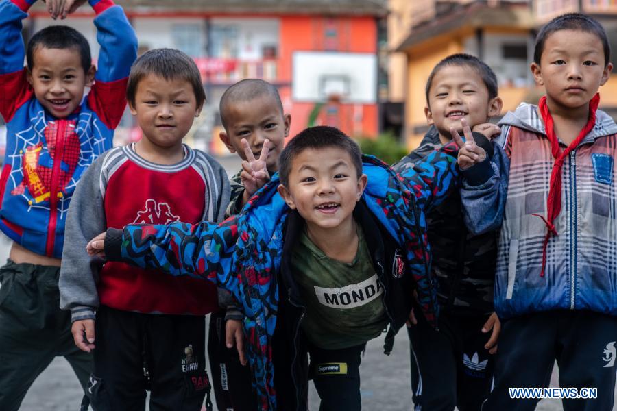 Students pose for a photo at Dulongjiang Nine-Year Comprehensive School in Dulongjiang Township of Gongshan Dulong and Nu Autonomous County, southwest China's Yunnan Province, Oct. 28, 2020. Dulong is a mountain-dwelling ethnic group in southwest China. It is one of the least populous of China's 56 minority nationalities. It is also called a "direct-transition" minority ethnic group because the Dulong people didn't bid farewell to primitive life until the founding of the People's Republic of China in 1949 and since then they directly stepped into the socialist society. Most Dulong people live in Dulongjiang Township, where an inhospitable mountainous terrain had been thwarting the town's development for decades. Thus, the township had been one of the poorest area in Yunnan Province and even in the entire country. But the local economic and social development has been fast-tracked in recent years when many difficulties that bottlenecked the development were eliminated thanks to state and provincial efforts. For example, the town built better infrastructure, developed specialized industries and enrolled high-quality talents. In 2018, the Dulong ethnic group shook off poverty as a whole, a phenomenal breakthrough. Nowadays, all of the 1,100-plus households in Dulongjiang have moved into new, better residences. Many residents are now engaged in herbal planting and poultry husbandry with local characteristics. All of the six administrative villages have access to roads with hard surfaces and signals of radio and TV, and are all covered by the 4G network. All villagers benefit from a critical illness insurance program. Meanwhile, the youngsters are entitled to 14 years of free education which lasts from pre-school classes to high school education. The rate of primary school attendance and that of enrollment into schools for higher levels have both remained 100 percent. Nowadays, Dulongjiang is no longer the isolated, conservative and backward region it used to be. The Dulong people here are embracing modern life at a faster pace and are keeping pace with the outside world. (Xinhua/Hu Chao)