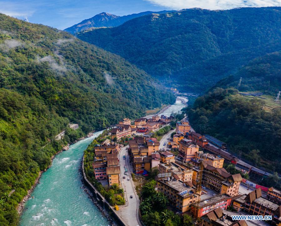 Aerial photo taken on Oct. 31, 2020 shows a view of Dulongjiang Township of Gongshan Dulong and Nu Autonomous County, southwest China's Yunnan Province. Dulong is a mountain-dwelling ethnic group in southwest China. It is one of the least populous of China's 56 minority nationalities. It is also called a "direct-transition" minority ethnic group because the Dulong people didn't bid farewell to primitive life until the founding of the People's Republic of China in 1949 and since then they directly stepped into the socialist society. Most Dulong people live in Dulongjiang Township, where an inhospitable mountainous terrain had been thwarting the town's development for decades. Thus, the township had been one of the poorest area in Yunnan Province and even in the entire country. But the local economic and social development has been fast-tracked in recent years when many difficulties that bottlenecked the development were eliminated thanks to state and provincial efforts. For example, the town built better infrastructure, developed specialized industries and enrolled high-quality talents. In 2018, the Dulong ethnic group shook off poverty as a whole, a phenomenal breakthrough. Nowadays, all of the 1,100-plus households in Dulongjiang have moved into new, better residences. Many residents are now engaged in herbal planting and poultry husbandry with local characteristics. All of the six administrative villages have access to roads with hard surfaces and signals of radio and TV, and are all covered by the 4G network. All villagers benefit from a critical illness insurance program. Meanwhile, the youngsters are entitled to 14 years of free education which lasts from pre-school classes to high school education. The rate of primary school attendance and that of enrollment into schools for higher levels have both remained 100 percent. Nowadays, Dulongjiang is no longer the isolated, conservative and backward region it used to be. The Dulong people here are embracing modern life at a faster pace and are keeping pace with the outside world. (Xinhua/Hu Chao)