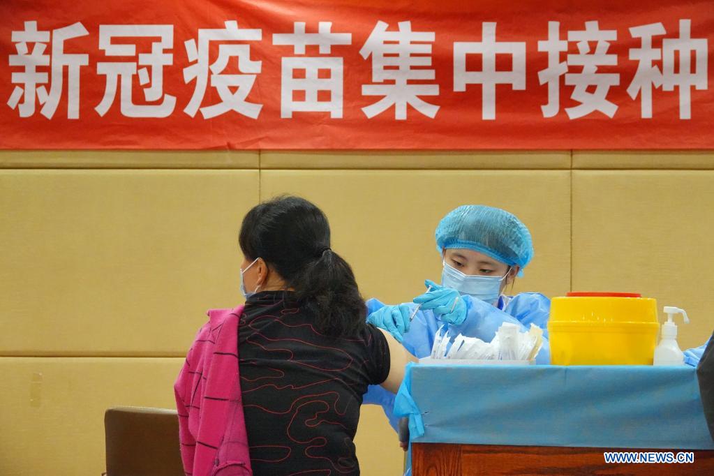 A nurse administers a shot of COVID-19 vaccine for a resident in Yantai, east China's Shandong Province, May 12, 2021. China had more than 4.7 million registered nurses by the end of 2020, the National Health Commission said on International Nurses Day, which falls on Wednesday. (Photo by Tang Ke/Xinhua)
