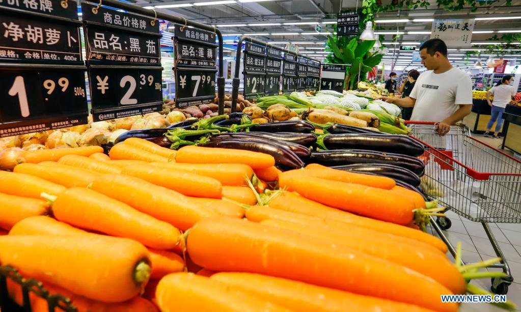 A citizen shops at a supermarket in Zunhua City, north China's Hebei Province, June 9, 2021. China's consumer price index (CPI), a main gauge of inflation, rose 1.3 percent year on year in May, data from the National Bureau of Statistics showed Wednesday. (Photo by Liu Mancang/Xinhua)