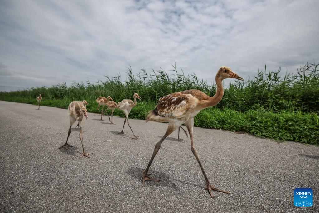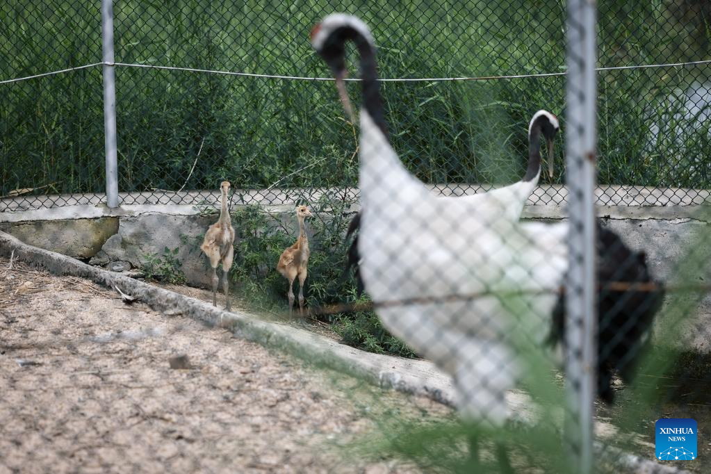 The crane breeding and protection station now has 83 baby red-crowned cranes. The endangered red-crowned crane is under national first-class protection. (Xinhua/Pan Yulong)