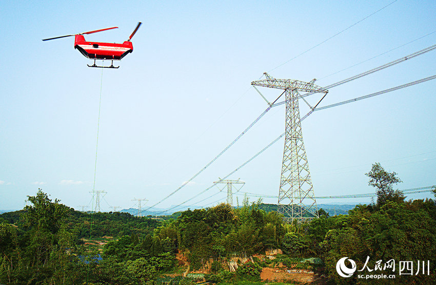 "One unmanned helicopter completed the work that could have taken 20 people a day in four hours. It was really fast," said Zhang Jie, head of a maintenance crew of the UHV branch of State Grid Sichuan Electric Power Company.