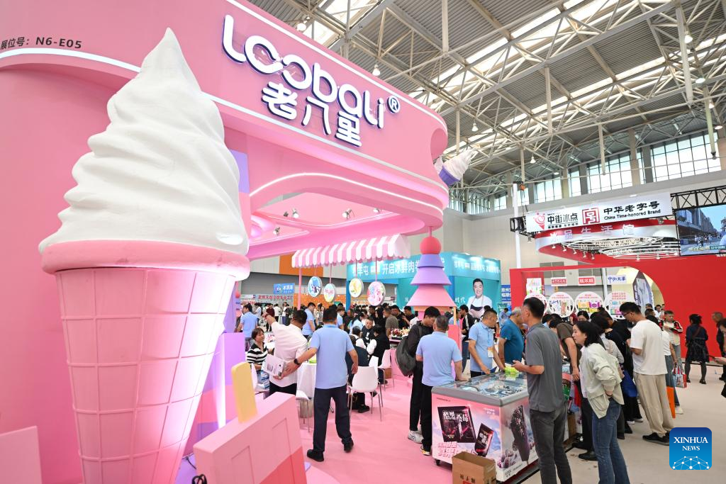 People visit the Ice Cream China 2024 in north China's Tianjin Municipality, Sept. 26, 2024. Ice Cream China 2024 opened Thursday in Tianjin, attracting more than 450 companies from home and abroad. (Xinhua/Sun Fanyue)