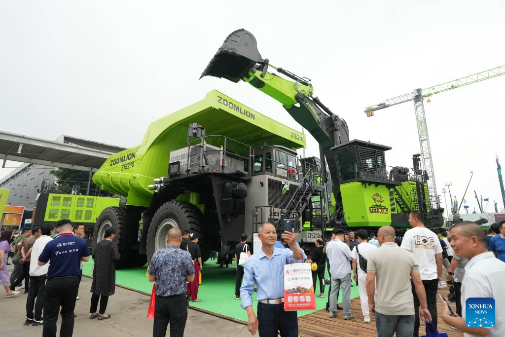 This photo taken on May 15, 2025 shows a scene during the 4th Changsha International Construction Equipment Exhibition in Changsha, central China's Hunan Province. The event is held here from May 15 to 18, featuring new-generation machinery equipment for construction, emergency service, mining, agriculture and transportation, with an exhibition area of 300,000 square meters. (Xinhua/Xue Yuge)