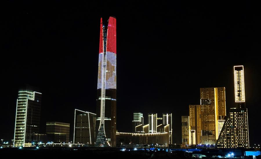 Located in the heart of the desert some 50 km east of the capital Cairo, the CBD is one of the key projects of the China-Egypt joint construction of the Belt and Road Initiative. The project includes 20 commercial and residential skyscrapers as well as supporting municipal infrastructure, among which is a 385.8-meter-high iconic tower, the tallest building in Africa.