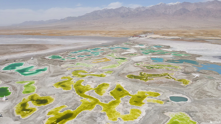Photo shows colorful Emerald Lake in Dachaidan town, Haixi Mongolian and Tibetan Autonomous Prefecture, northwest China's Qinghai Province. (People's Daily Online/Kuang Yu)