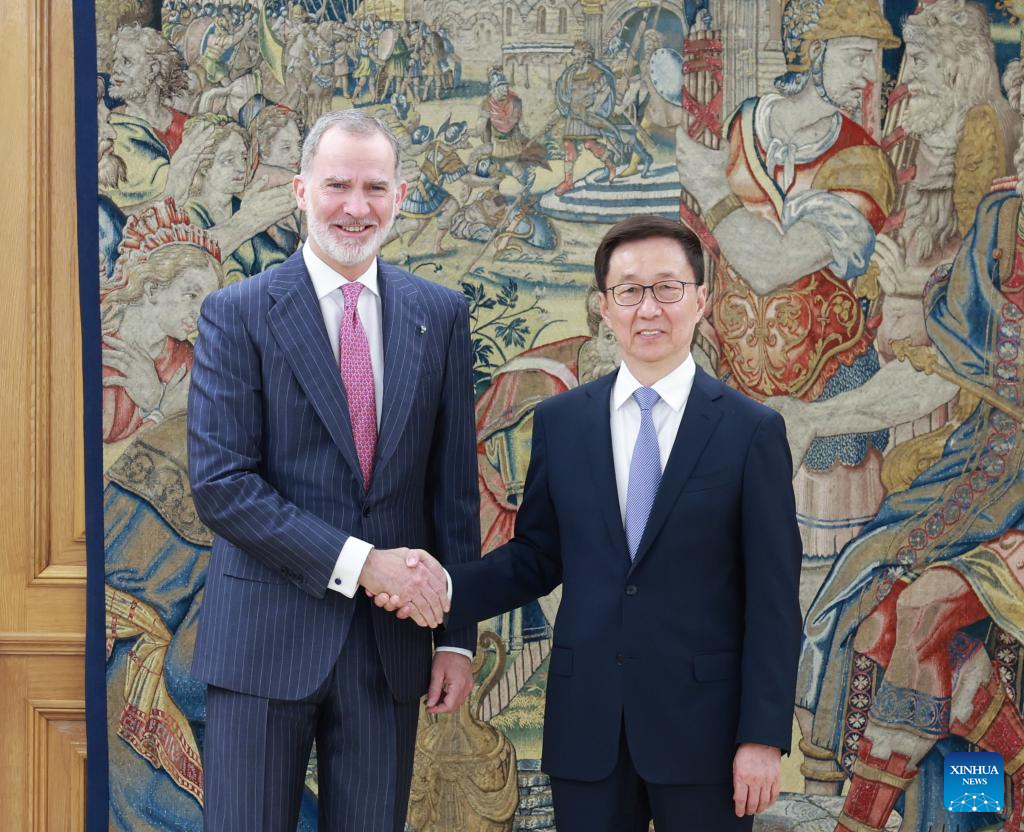 Conveying Chinese President Xi Jinping's greetings to the king, Han said that China appreciates the Spanish royal family's long-standing support for the development of China-Spain relations.