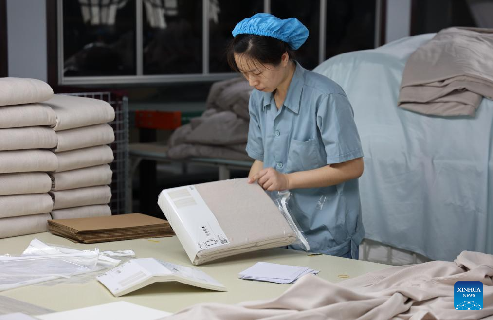 A worker works at a production plant of a spinning factory in Binzhou, east China's Shandong Province, June 16, 2025. China's economy continued to expand steadily in May, supported by ongoing policy measures that helped sustain recovery amid global uncertainties, official data showed on Monday. (Photo by Chu Baorui/Xinhua)