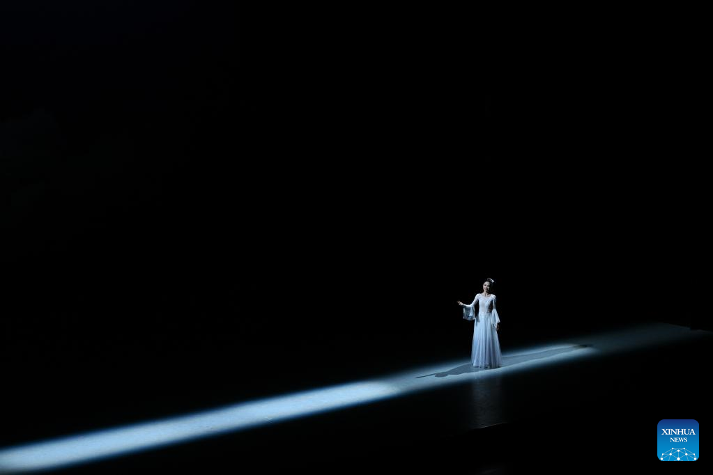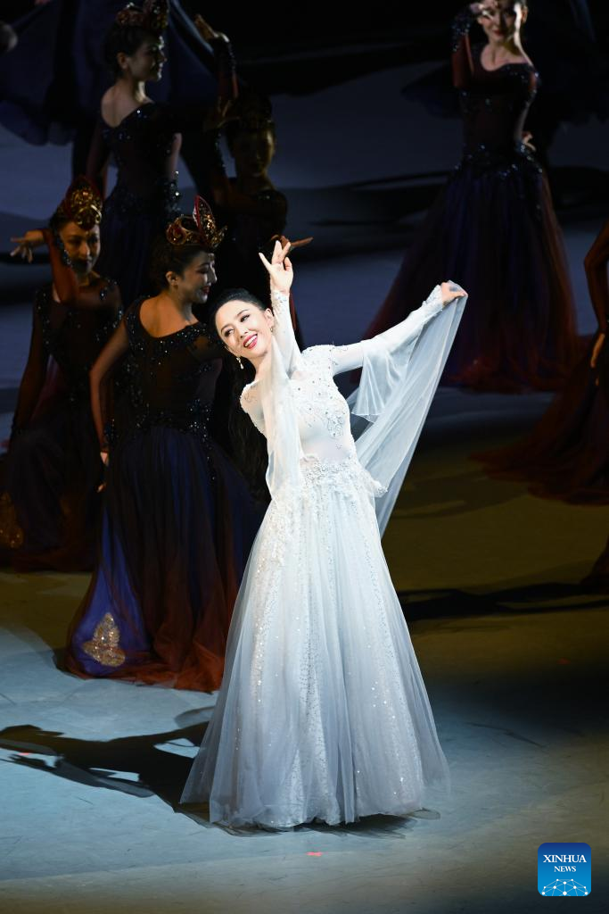 Chinese actress Tong Liya performs a dance drama during the 7th China Xinjiang International Dance Festival at the Xinjiang People's Hall in Urumqi, capital of northwest China's Xinjiang Uygur Autonomous Region, July 20, 2025.