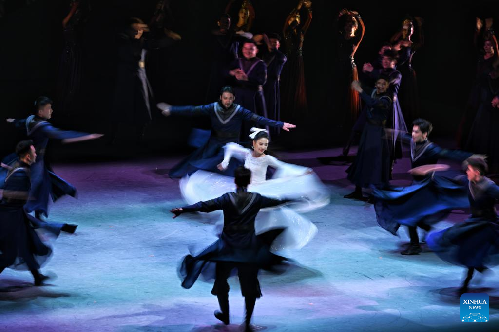 Artists perform a dance drama during the 7th China Xinjiang International Dance Festival at the Xinjiang People's Hall in Urumqi, capital of northwest China's Xinjiang Uygur Autonomous Region, July 20, 2025.