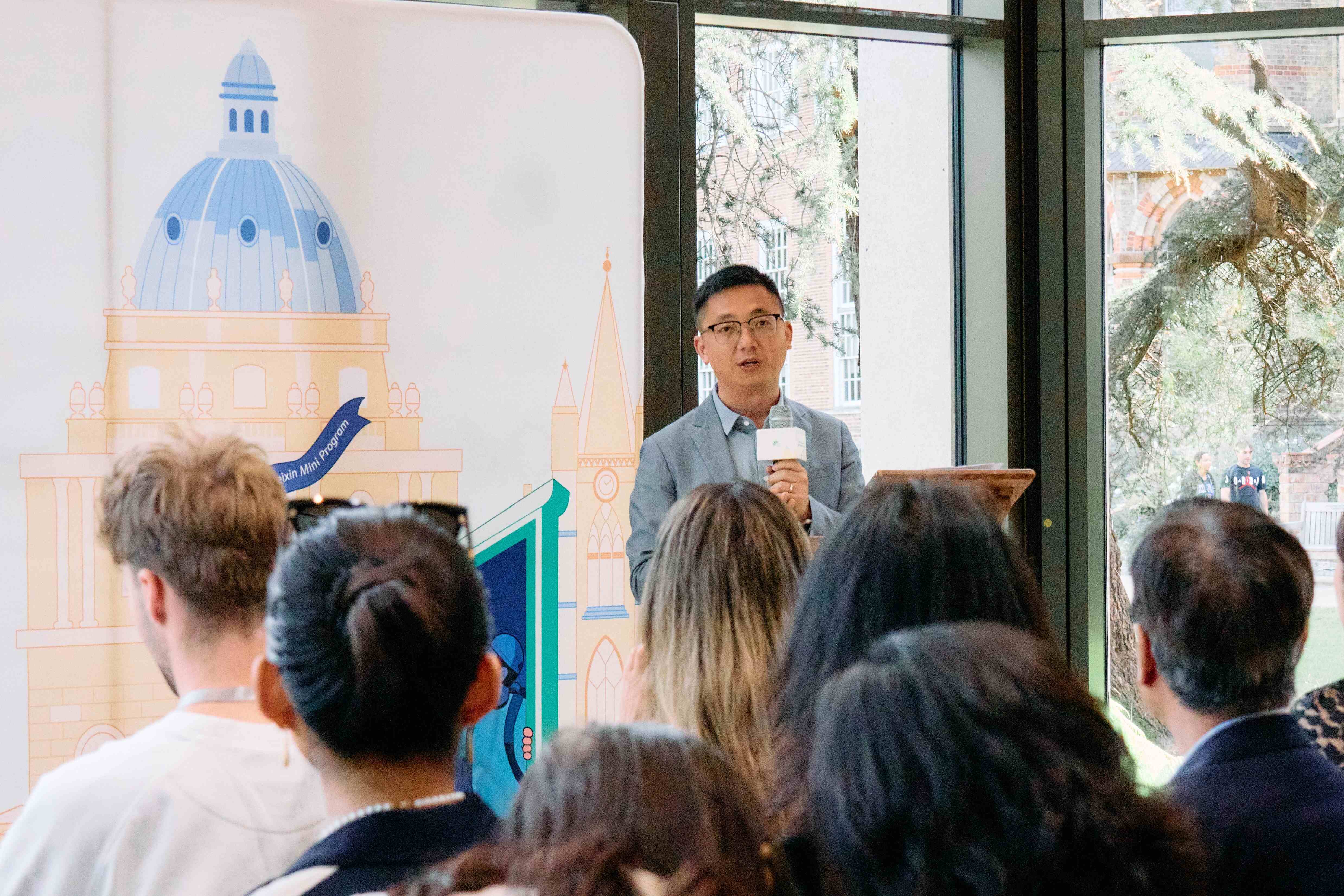 Participants join the 4th Weixin Mini Program Global Innovation Challenge opening ceremony in Oxford, Britain, Aug. 5, 2025. (Photo/Zhao Wenkai)