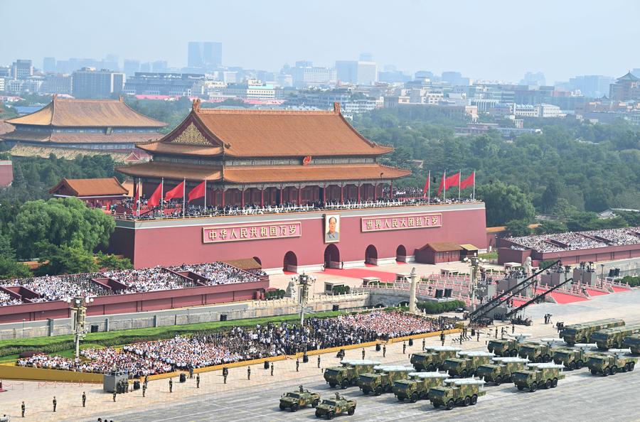 A grand gathering to commemorate the 80th anniversary of the victory in the Chinese People's War of Resistance against Japanese Aggression and the World Anti-Fascist War is held in Beijing, capital of China, Sept. 3, 2025. (Xinhua/Yao Dawei)