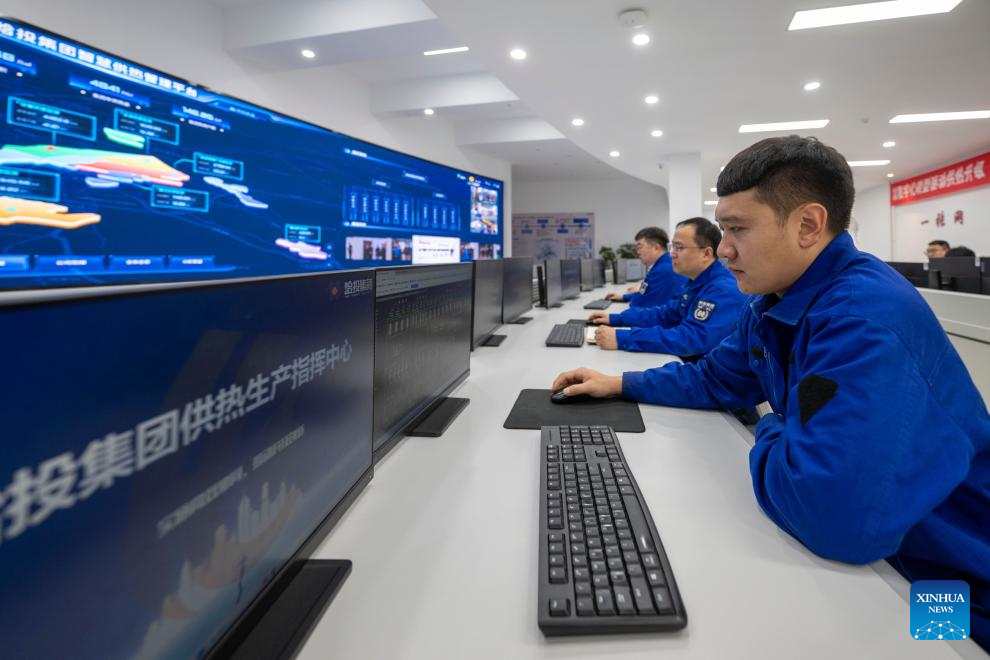 A staff member monitors heating facilities at a heating service company in Harbin, northeast China's Heilongjiang Province, Oct. 20, 2025. Harbin, China's northernmost provincial capital, entered its heating season on Monday. Residents are now benefiting from improved heating services following an upgrade to the heating system. (Xinhua/Zhang Tao)