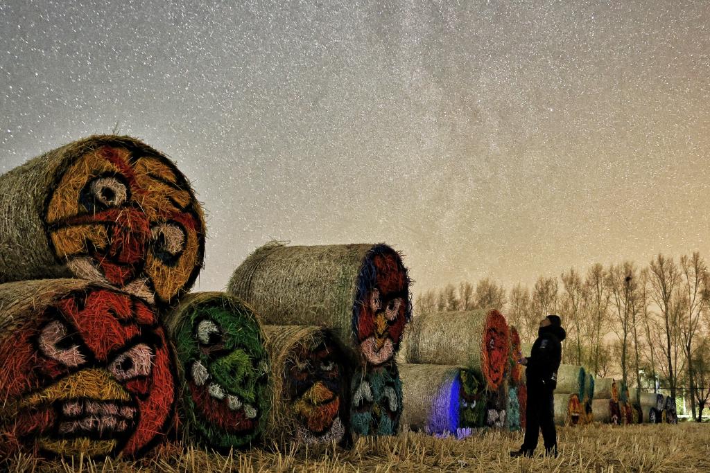 A man enjoys the Milky Way at Shangjieji Township in Fujin City, northeast China's Heilongjiang Province, Oct. 31, 2025.
