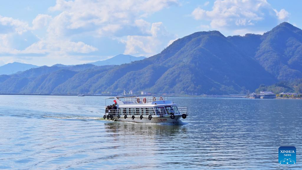 Tourists take a boat tour on the Yalu River along the Dandong section of G331 national highway in northeast China's Liaoning Province, Oct. 13, 2025. The G331 national highway, with a total length of 9,333 kilometers from Dandong City of northeast China's Liaoning Province to Altay of northwest China's Xinjiang Uygur Autonomous Region, is the second longest national highway in China. It spans six provinces and autonomous regions in northeast, north and northwest China, and is hailed as the "most beautiful border road".
