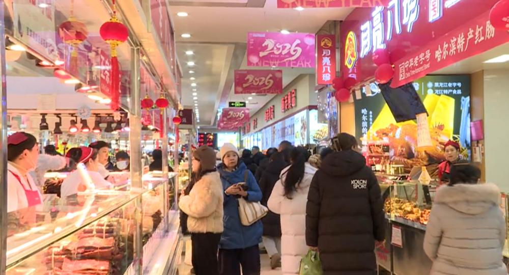 The century-old Fendou (Endeavor) Food Market, located in the basement of Guogeli Street, drew a large crowd, packed with locals and visitors by noon. This market has secured a spot on the must-visit lists for travelers who came to Harbin to ring in the New Year.