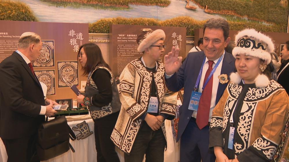 Mayors from around the world explored an intangible cultural heritage exhibition on the sidelines of the Global Mayors Dialogue in Harbin, which is held from Tuesday to Thursday.