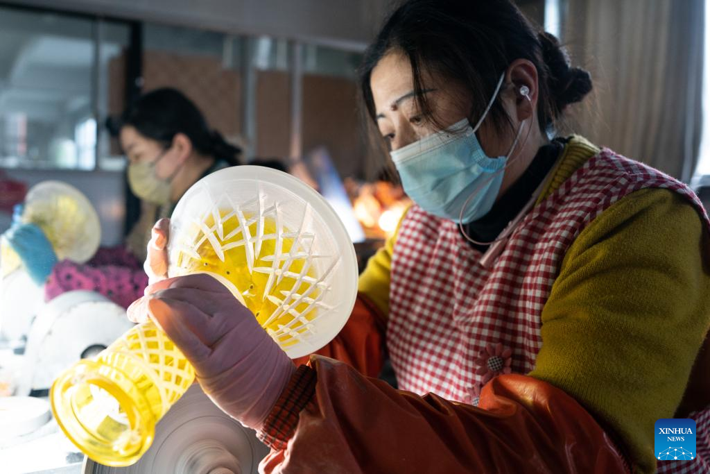 Workers make hookahs in Shiliang Town of Tianchang City, east China's Anhui Province, Jan. 14, 2026. In recent years, Shiliang has leveraged its traditional foundation in the art glass industry to develop a distinctive hookah production sector. The hookahs produced are primarily for export, reaching markets in the Middle East, Europe and other regions. (Xinhua/Du Yu)