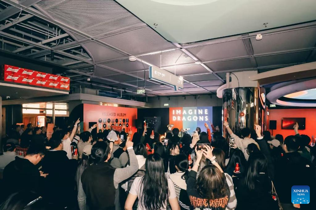 This photo taken on March 13, 2026 shows people visiting an Imagine Dragons-themed pop-up space in east China's Shanghai. (Xinhua)