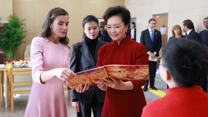 Peng Liyuan, Spain's Queen Letizia visit service center for persons with disabilities in Beijing
